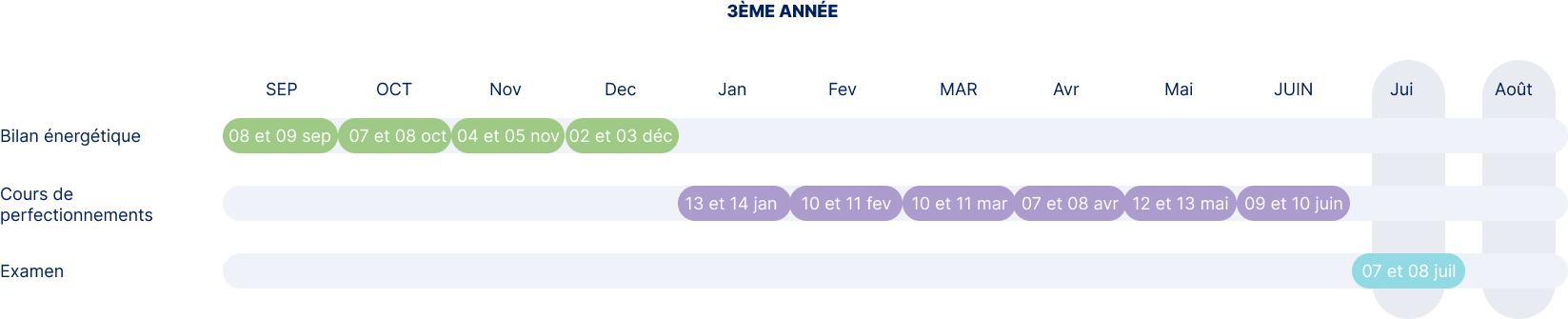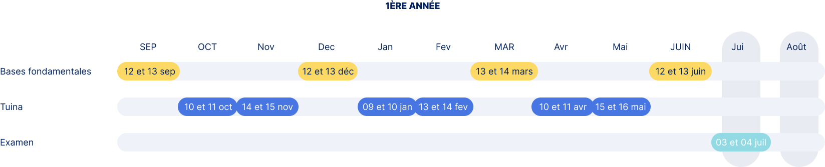 - Évaluation des connaissances à chaque fin d’année pour passer dans la classe supérieure par le biais d’un QCM et d’un cas pratique. Les examens auront lieu à l’issue de la semaine de cours intensif en Juillet.